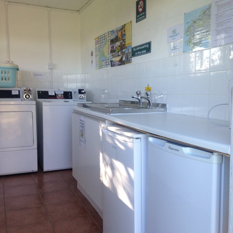 The laundry room/kitchen was very useful. No queuing for showers or washing up.